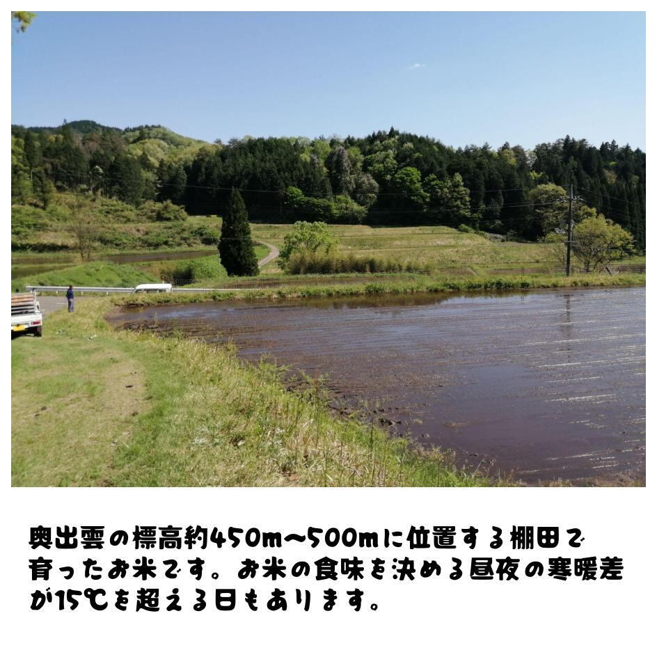 島根県仁多郡奥出雲町で栽培したコシヒカリです。この地域で取れた米は『仁多米』という名のブランド米としても知られています。令和6年産です。
